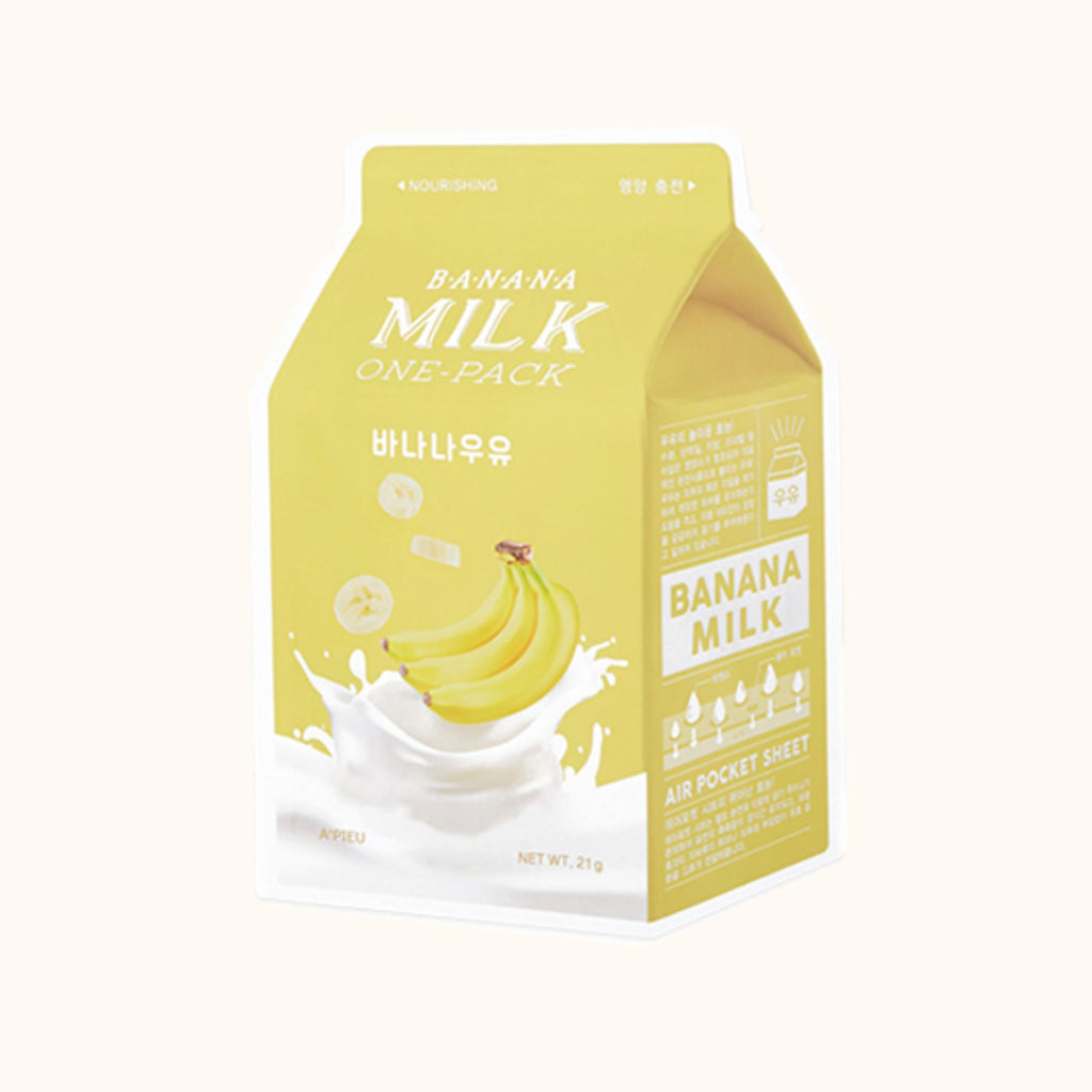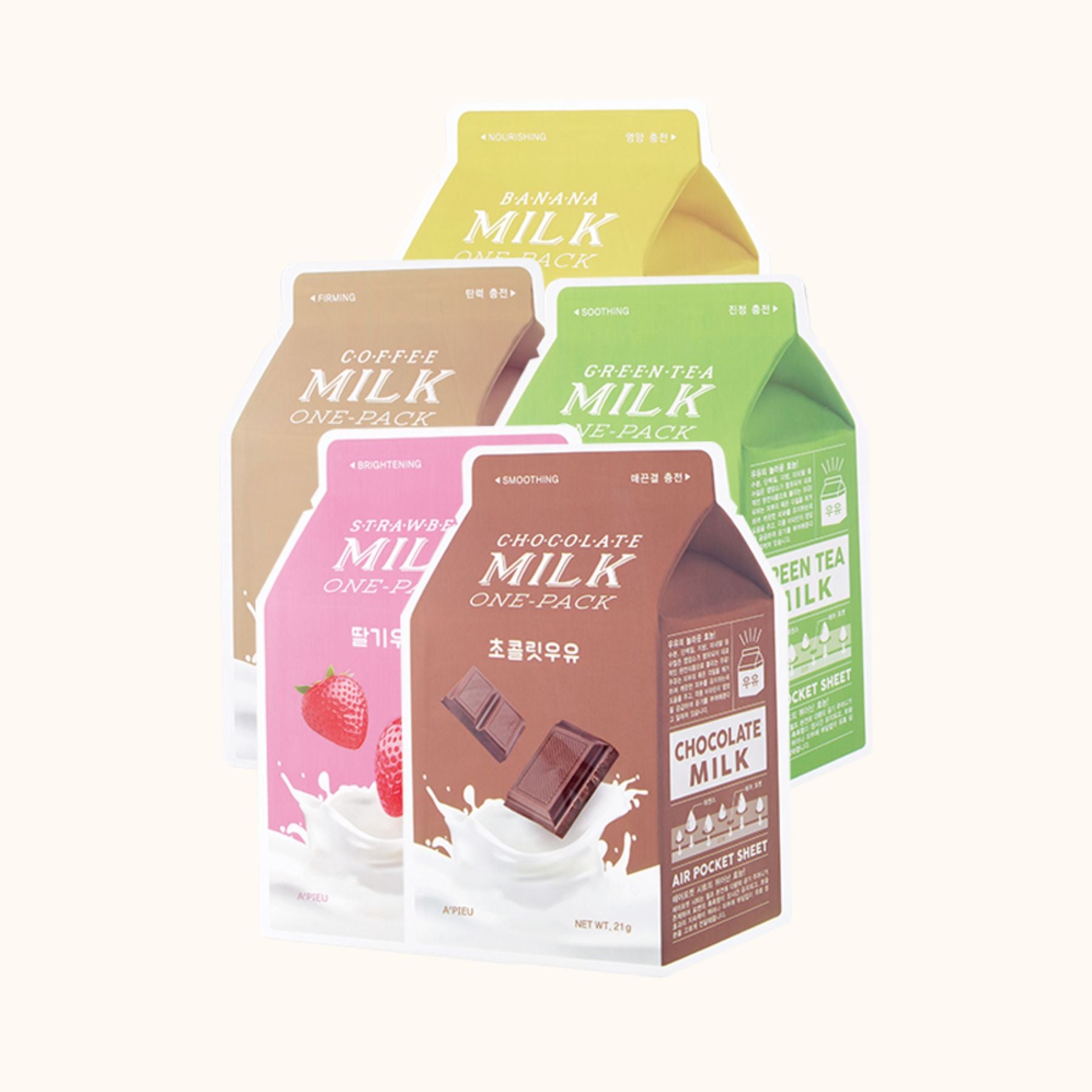 The A’PIEU Milk One Pack sheet masks use milk protein extract to deeply hydrate skin and remove dead skin cells for a youthful glow. Made from 100% cotton with a honeycomb texture, these masks come in 5 different variations, each with unique benefits like improved elasticity and nourishment.